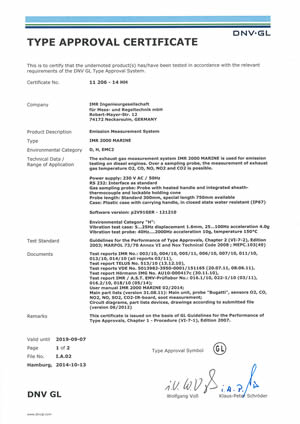 我們德國合作伙伴IMR公司制造的船用煙氣分析儀 IMR2000 Marine 最近獲得挪威DNV GL 認(rèn)證。認(rèn)證號為 Certificate No. 11 206 - 14 HH ,所依據(jù)最新標(biāo)準(zhǔn)為 MARPOL Annex VI and Nox Technical Code 2008.